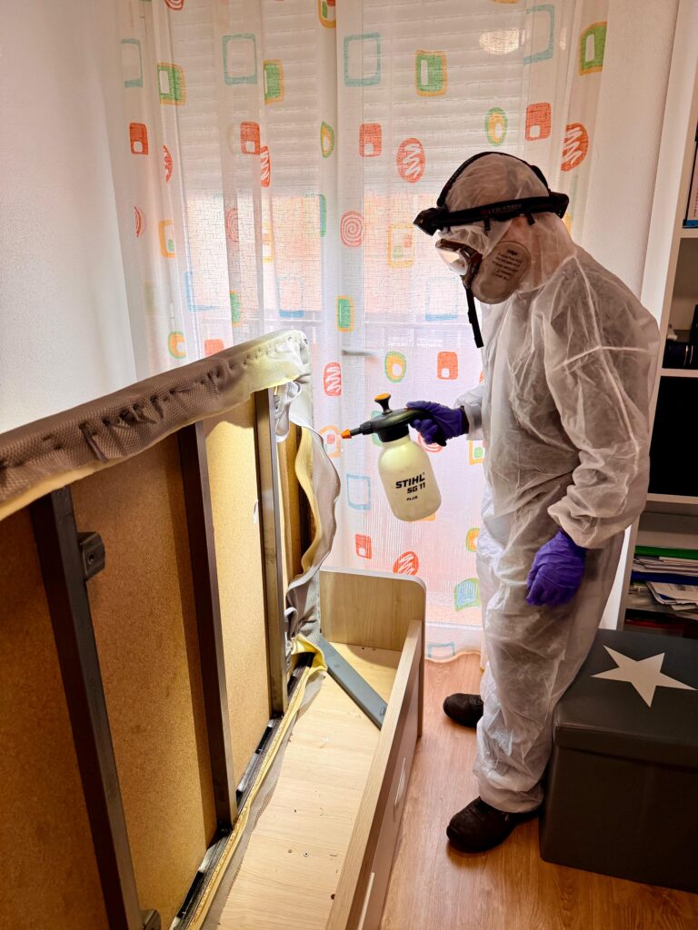 A menudo nos llaman por picaduras nocturnas, las cuales casi siempre se atribuye a los chinches de cama pero en ocasiones , no es así, el origen de las picaduras mientras descansamos por la noche en la cama o sofás pueden ser diverso, desde los molestos mosquitos, pulgas, ácaros de la sarna o alergias a otro tipo de ácaros del polvo, incluso reacciones alérgicas (Urticaria) por el uso de ciertos detergentes, pelos de mascotas o materiales sintéticos. Esta semana recibimos una llamada de un hombre preocupado porque su hija estaba estudiando fuera en Alicante en un piso compartido con la mala suerte que en su habitación habían chinches de cama, lo que es normal ya que hay cada año rotación de estudiantes y sin querer pueden traer consigo en las maletas o equipaje estos molestos insectos, el padre de la estudiante nos contó muy inquieto que su mujer estaba sufriendo de picaduras nocturnas.