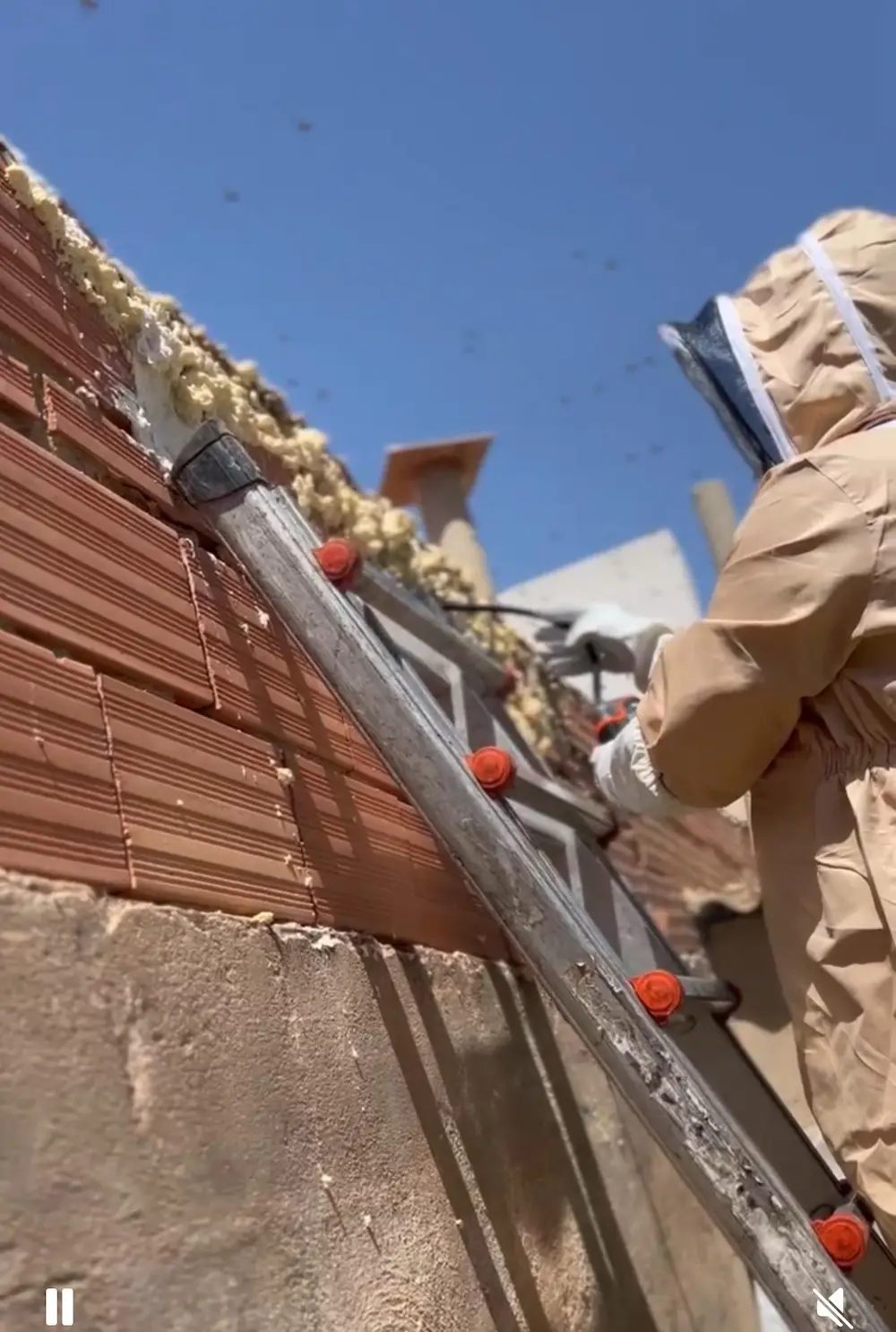 Cracks and holes in brick walls are also often their preferred spots. This reminds me of a call we got three weeks ago from Roldán. They had a wasp nest inside a brick wall. The colony had grown so large that it was becoming a nuisance and a danger to the children (people usually don't worry too much when the colony is small). Using a smoke machine, we identified the cracks where they were entering and exiting, in addition to the main entrance, as you can see in the image.