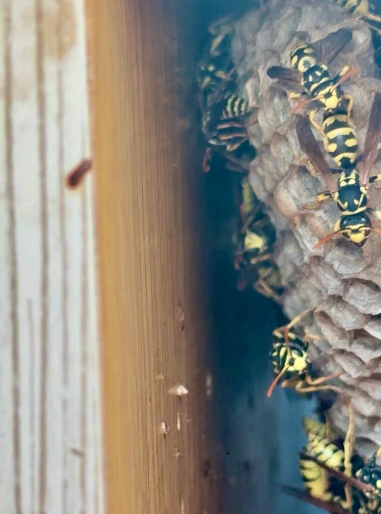Après avoir appliqué de l'insecticide, nous avons pu réduire une partie de la colonie et scellé les entrées possibles ; après quelques jours, les guêpes ont péri.